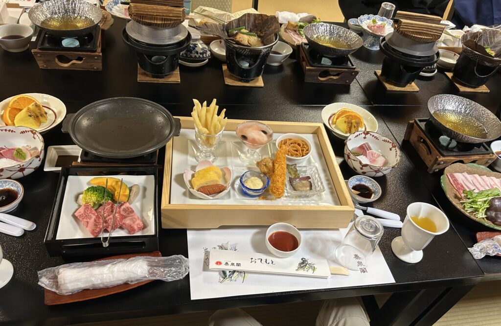 小学生用の料理の一部です。この後もうどん、カレーなども出てきてとても食べきれない量でした✨✨
